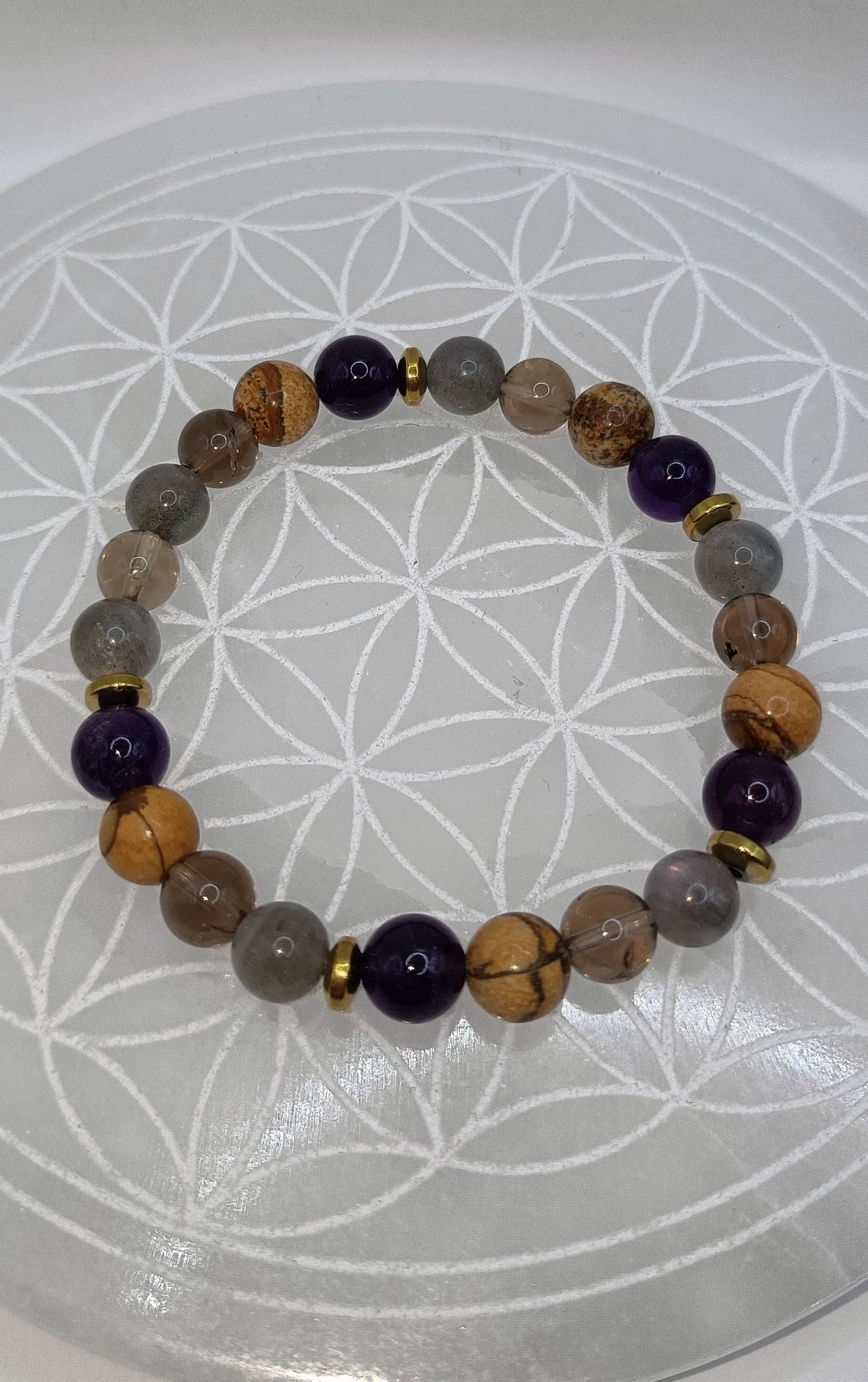 Pierres : Jaspe Paysage, Labradorite, Quartz Fumé, Améthyste