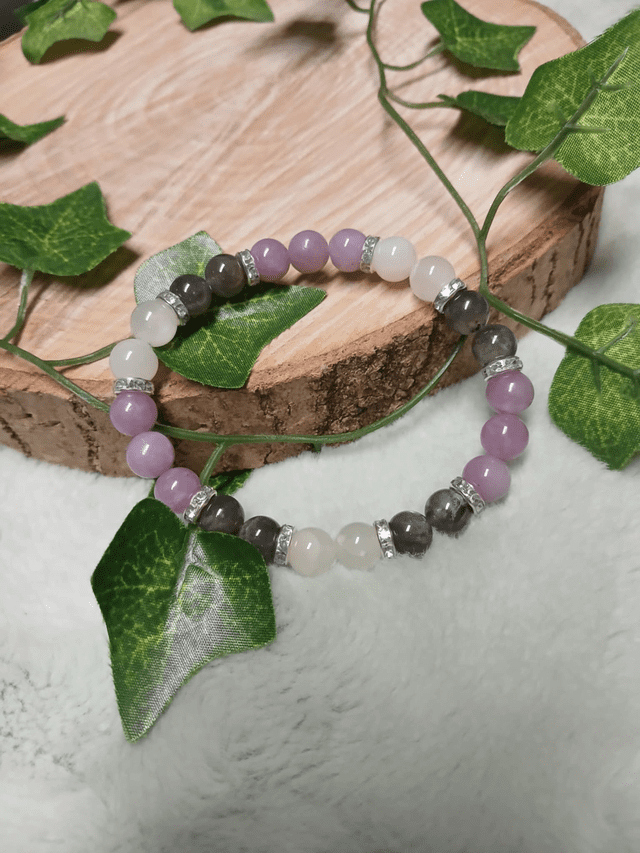 Un bracelet ou une combinaison de lépidolite, de pierre de lune beige et de labradorite offre une belle synergie de propriétés bénéfiques.